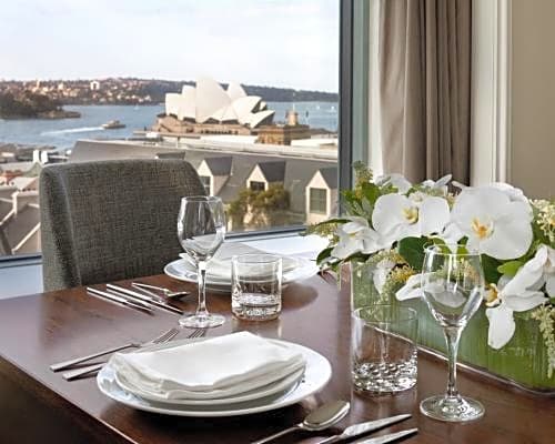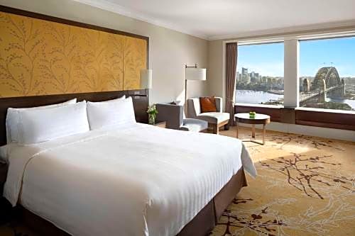 These luxurious rooms, showcase stunning views of Sydney Harbor, the Sydney Harbor Bridge and the Sydney Opera House. The rooms feature modern design and luxurious window seating to enjoy sweeping vistas as well as a marble bathroom containing a separate bath and shower.